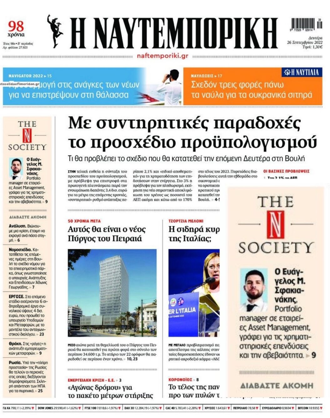 Δημοσίευση: Έντυπο και ηλεκτρονικό φύλο της εφημερίδας «Ναυτεμπορική» 26.09.22