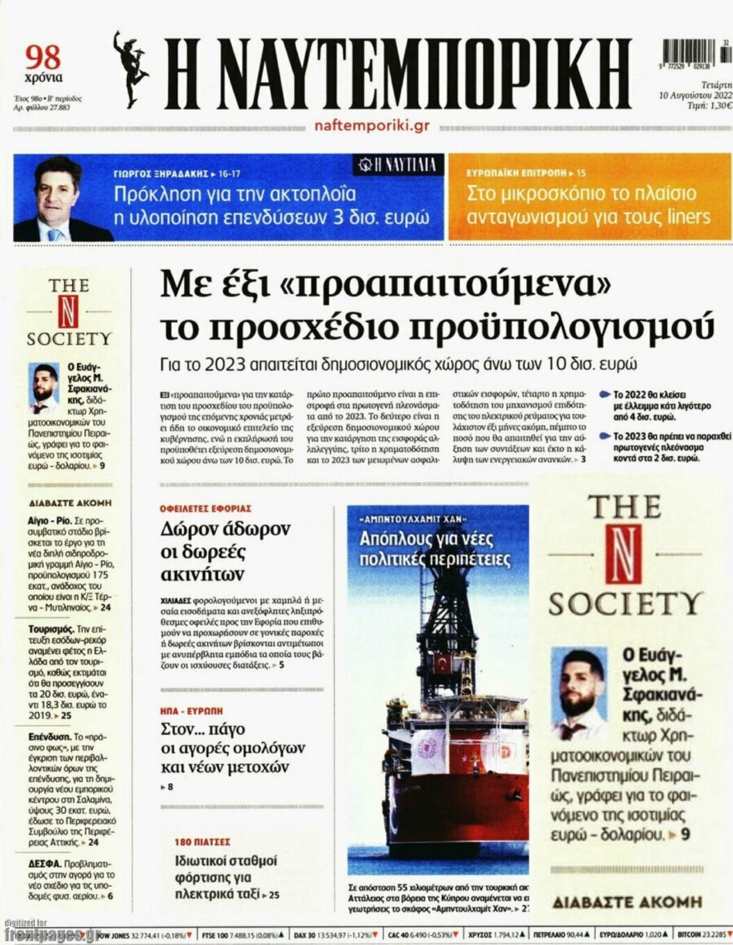 Δημοσίευση: Έντυπο και ηλεκτρονικό φύλο της εφημερίδας «Ναυτεμπορική» 10.08.22