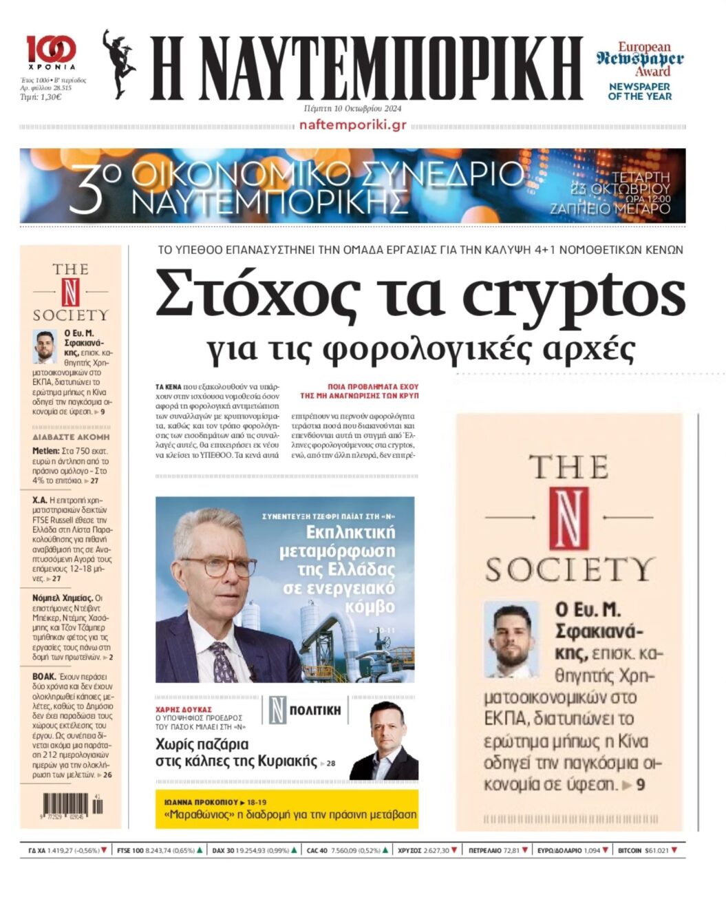 Δημοσίευση: Έντυπο και ηλεκτρονικό φύλο της εφημερίδας «Ναυτεμπορική» 10.10.24