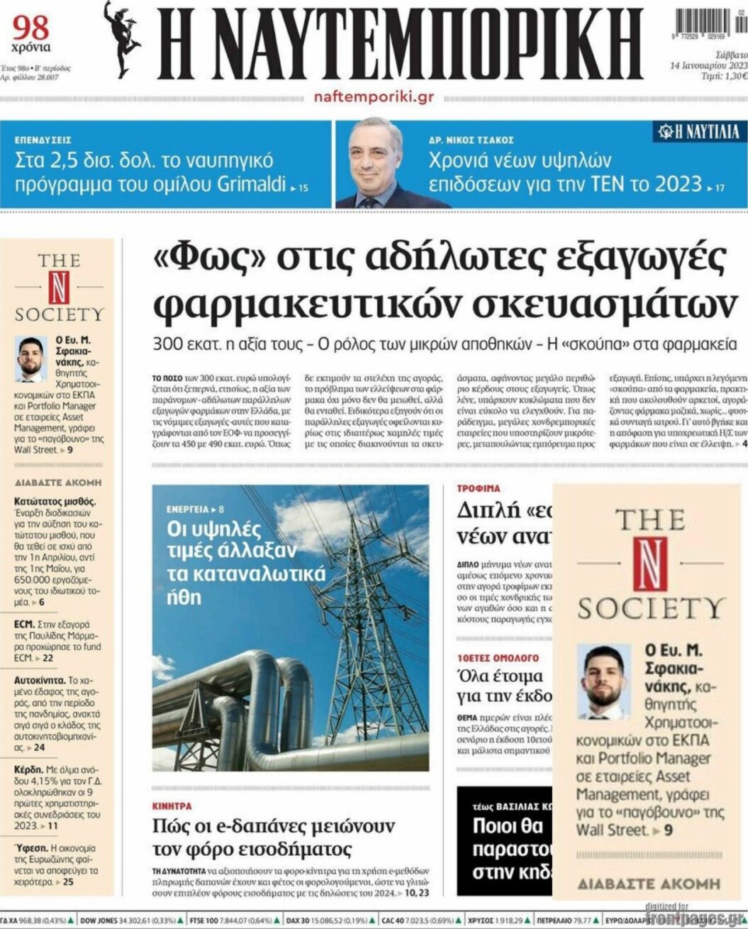Δημοσίευση: Έντυπο και ηλεκτρονικό φύλο της εφημερίδας «Ναυτεμπορική» 14.01.23