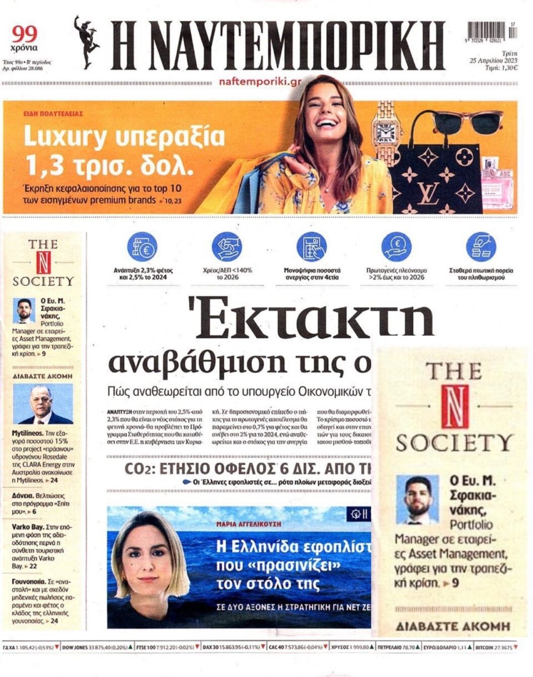 Δημοσίευση: Έντυπο και ηλεκτρονικό φύλο της εφημερίδας «Ναυτεμπορική» 25.04.23