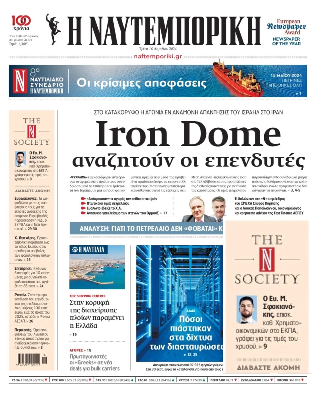 Δημοσίευση: Έντυπο και ηλεκτρονικό φύλο της εφημερίδας «Ναυτεμπορική» 16.04.24